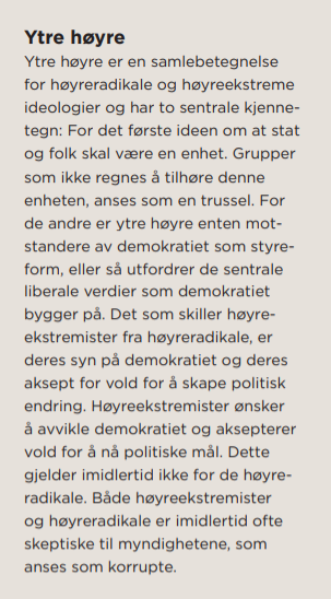 Ser vi videre på hvor PST forventer at radikalisering vil foregå, er det interessant å sammenlikne rekrutteringsbasene til hhv høyreekstreme og islamistiske ekstremister. Om høyreekstrem radikalisering skriver PST følgende: