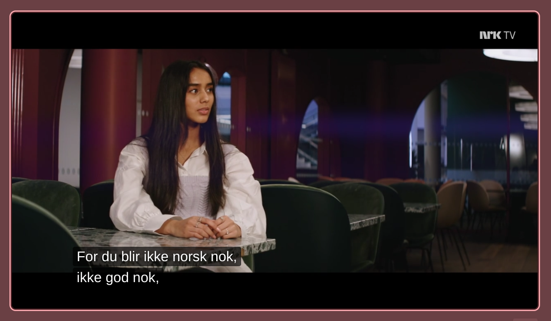 – I tredje klasse spurte en lærer meg hvor jeg kom fra. Jeg sa Norge. Og da sa hun «men du ser jo ikke etnisk norsk ut». Og jeg skjønte ikke hva hun mente, så jeg måtte hjem til mamma og spørre hva «etnisk» betyr.