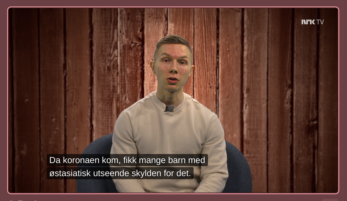 Deretter forklarer NRKs programleder at rasisme er «når vi tenker at noen er mindre verdt eller behandler noen urettferdig på grunn av hudfargen sin, religionen sin, kulturen sin eller hvor man kommer fra. Rasisme er vondt og vanskelig å oppleve, og det skaper urettferdighet.»
