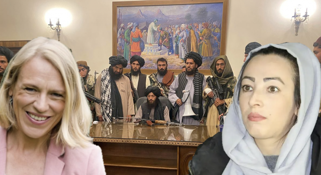 For best mulig å «sikre» at Taliban skulle lytte til kvinnenes stemme, hadde regjeringen også hentet en kvinnelig afghansk feminist ved navn Hoda Khamosh (26). Stolt kunne utenriksministeren fortelle oss hun og regjeringen således hadde bidratt til at Taliban måtte ta en seriøs samtale med en kvinneaktivist og lytte til deres krav.