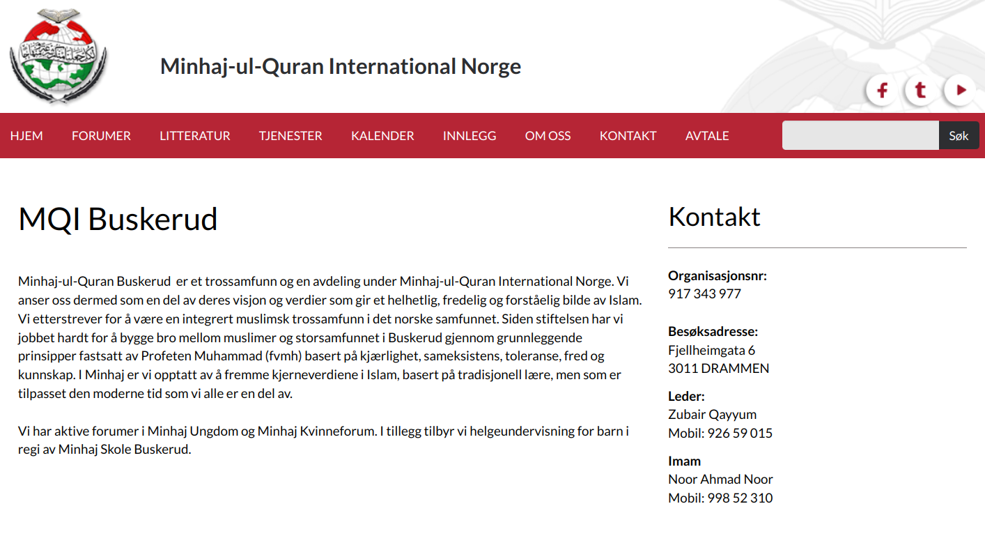 Uttalelse fra Minhaj Ul Quran Buskerud