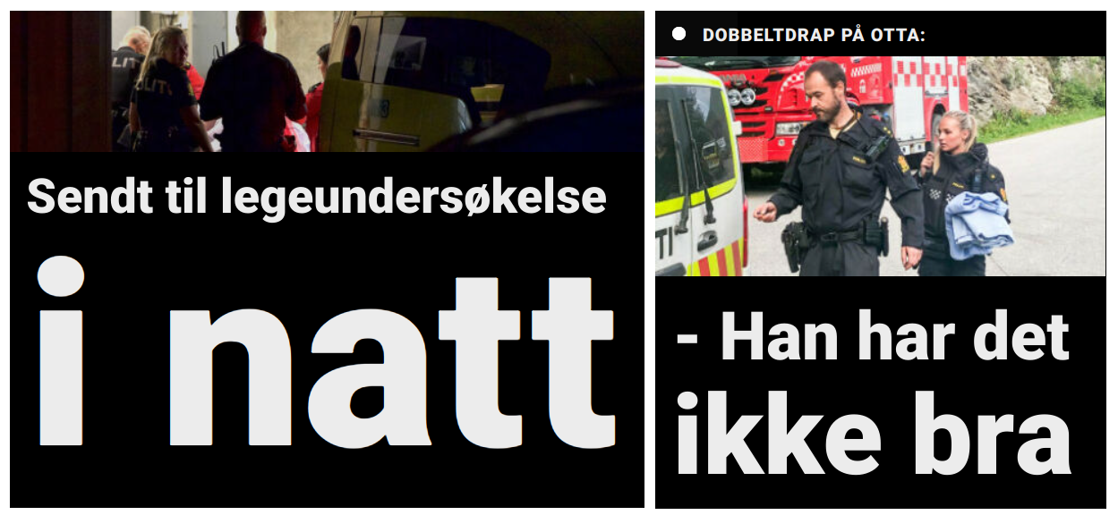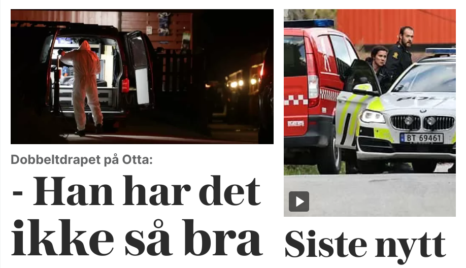 Drap er dramatisk. Dobbeltdrap er mer enn dobbelt dramatisk, ganske enkelt fordi den ene drepte høyst sannsynlig var vitne til drap på en nærstående før hun eller han selv ble drept. Å se en av sine nærmeste bli stukket i hjel uten å kunne hjelpe vedkommende er vel det frykteligste noe menneske kan oppleve, men norske hovedstrømsmedier tilpasser informasjonen slik at den kan inntas til morgenkaffen uten at publikum setter kaffen i halsen.