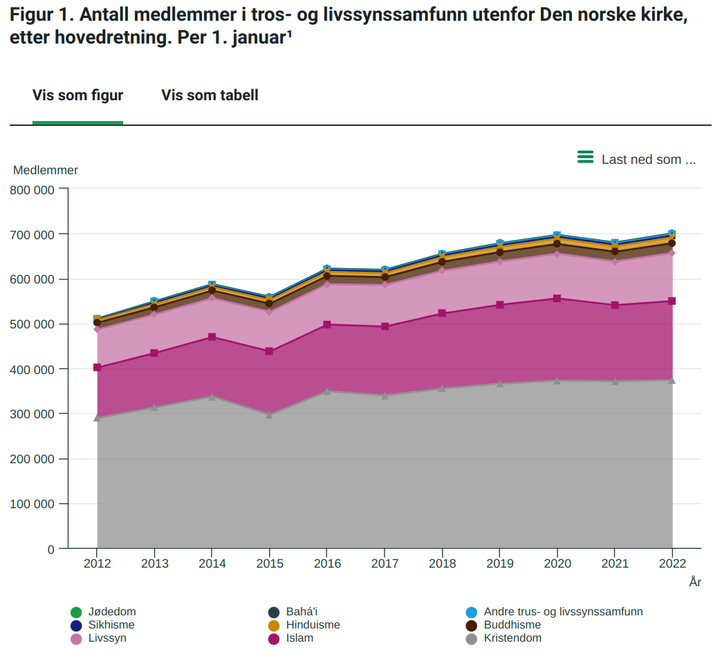 SSB har publisert ferske tall over medlemmer i tros- og livssynssamfunn. Tallene viser at nordmenn melder seg ut av Den norske kirke i raskere tempo enn noensinne, mens muslimske og andre tros- og livssynssamfunn øker medlemsmassen.