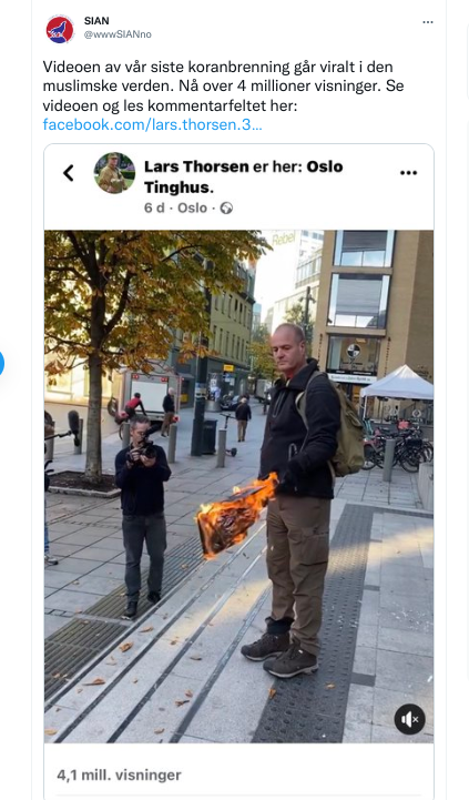 Videoen av vår siste koranbrenning går viralt i den muslimske verden. Nå over 4 millioner visninger. Se videoen og les kommentarfeltet her.