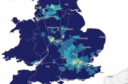 Kartet viser utbredelse av briter og ikke-briter. Mørk farge er briter. Kilde: Daily Mail