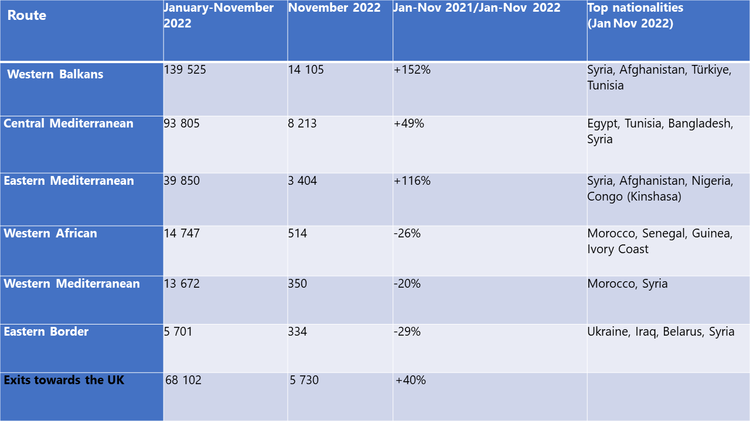 Tall fra Frontex – EU-organet som har til oppgave å vokte EUs yttergrenser – viser at 2022 har vært et godt år for menneskesmuglerne i Tyrkia og Nord-Afrika. Menneskesmugling er nå vesentlig mer profitabelt enn narkotikasmugling, og risikoen for å bli tatt er minimal. Og blir du tatt er straffene vesentlig lavere enn for narkotikasmugling.