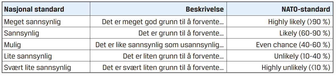 Når risikoen for drap begått av personer med «alvorlige psykiske lidelser og problematisk rusmiddelbruk» oppgis å være i kategorien «meget sannsynlig», betyr det at politiet regner med at det er mer enn 90 prosent sannsynlighet for at det vil skje.