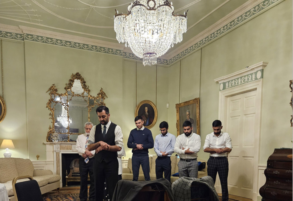 Yousaf (37) er født av pakistanske innvandrere og er praktiserende muslim. Det er både interessant og også oppsiktsvekkende at han selv velger å markere seg i sin nye maktposisjon ved å demonstrere sin islamske posisjon, en posisjon som står særdeles langt fra den skotske kulturen.