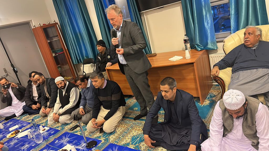 Rådmann Oslo kommune Asad Naseer Sheikh Mr. Sheikh Iftikhar Ahmed Haji Mir Fazal Hussain Sahib Chaudhry Mudassir Ali Sahib Mr. Qari Mahmood ul Hassan Sahib Rana Muhammad Ashraf Sahib Haji Munir Sahib Asghar Ali Sahib og flere deltok i dette programmet. Byråd Oslo Arbeiderparti seniorer Før Iftar snakket politikeren med muslimer og gratulerte alle med Eid. Seinere informerte han alle om kommunevalget sitt om at valget er nær. Dere blir alle bedt om å avgi deres stemme ved kommunevalget. Gjør det.