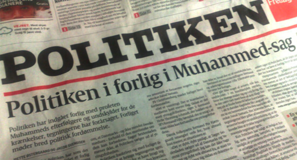 Under Muhammedkrisen ble det reist krav til regjeringen om å gi muslimer – eller profetens etterkommer som de kalte seg – en unnskyldning og erstatning, noe regjeringen avviste. Men om den daværende danske regjeringen, med Anders Fogh Rasmussen i spissen, sto rakrygget i krisen, så begynte andre å bakke ut. For eksempel la den danske avisen Politiken, politisk rød som de er, seg skinnflat for kravene, som de selv kalte et «forlik».