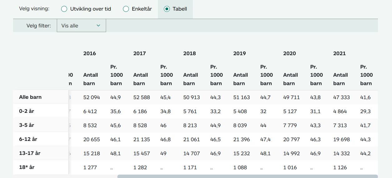Justert for antall barn i befolkningen er ikke tallene på rask vei nedover, de er snarere stabile, for antallet barn i befolkningen er på vei ned. Statistikken over antall fødte viser at det nå leveres flere årlige bekymringsmeldinger enn det fødes nye barn.