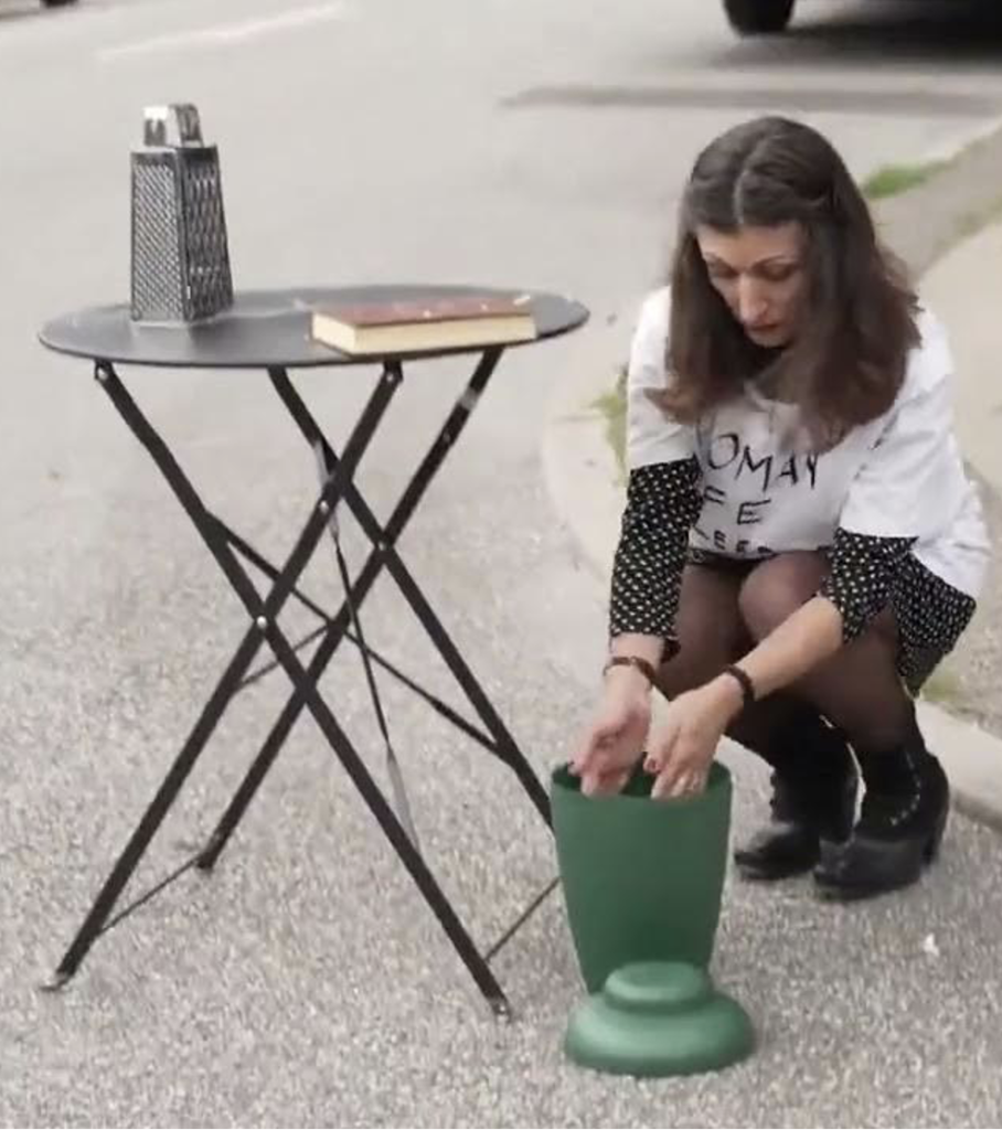 Henvisningen til «rive i stykker» handler om den danskiranske kunstneren Firoozeh Bazrafkan som lørdag 5. august stilte seg opp foran den iranske ambassaden i København og satte opp sitt eget lille «kjøkken» der hun med et rivjern rev opp hele koranen og plasserte restene i en bøtte formet som en urne. Seansen kan ses her.