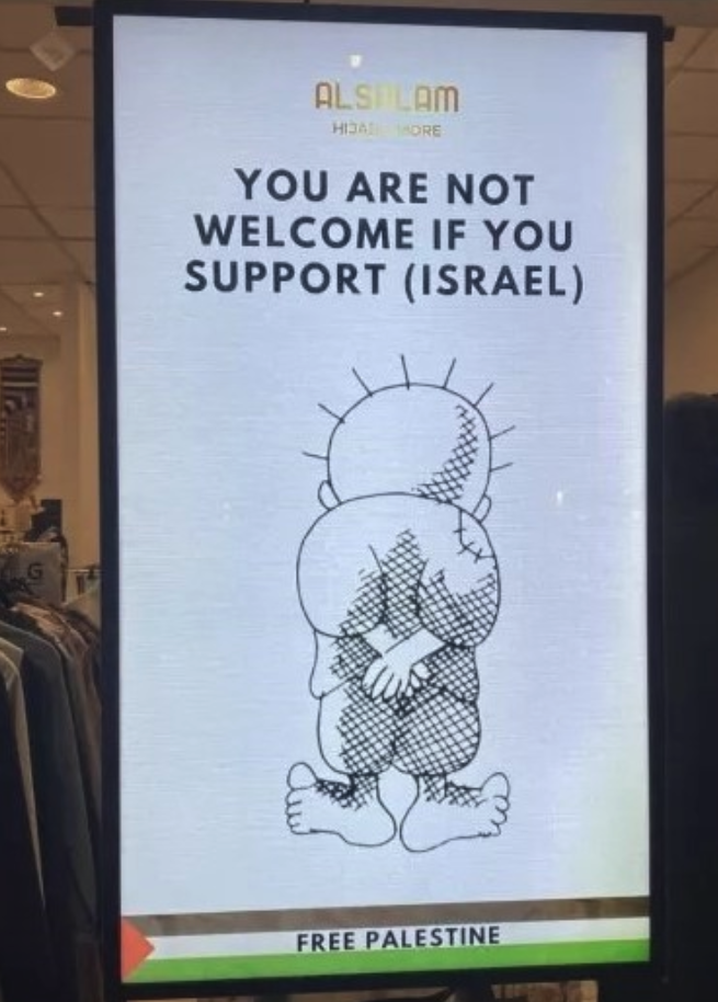 Og hva med dette budskapet som er å finne i en butikk i Oslo, dertil med det arabiske navnet «ALSALAM» – som betyr fred være med deg. Skjønner vi budskapet? Skjønner vi at vi må lære å skille venn fra fiende?