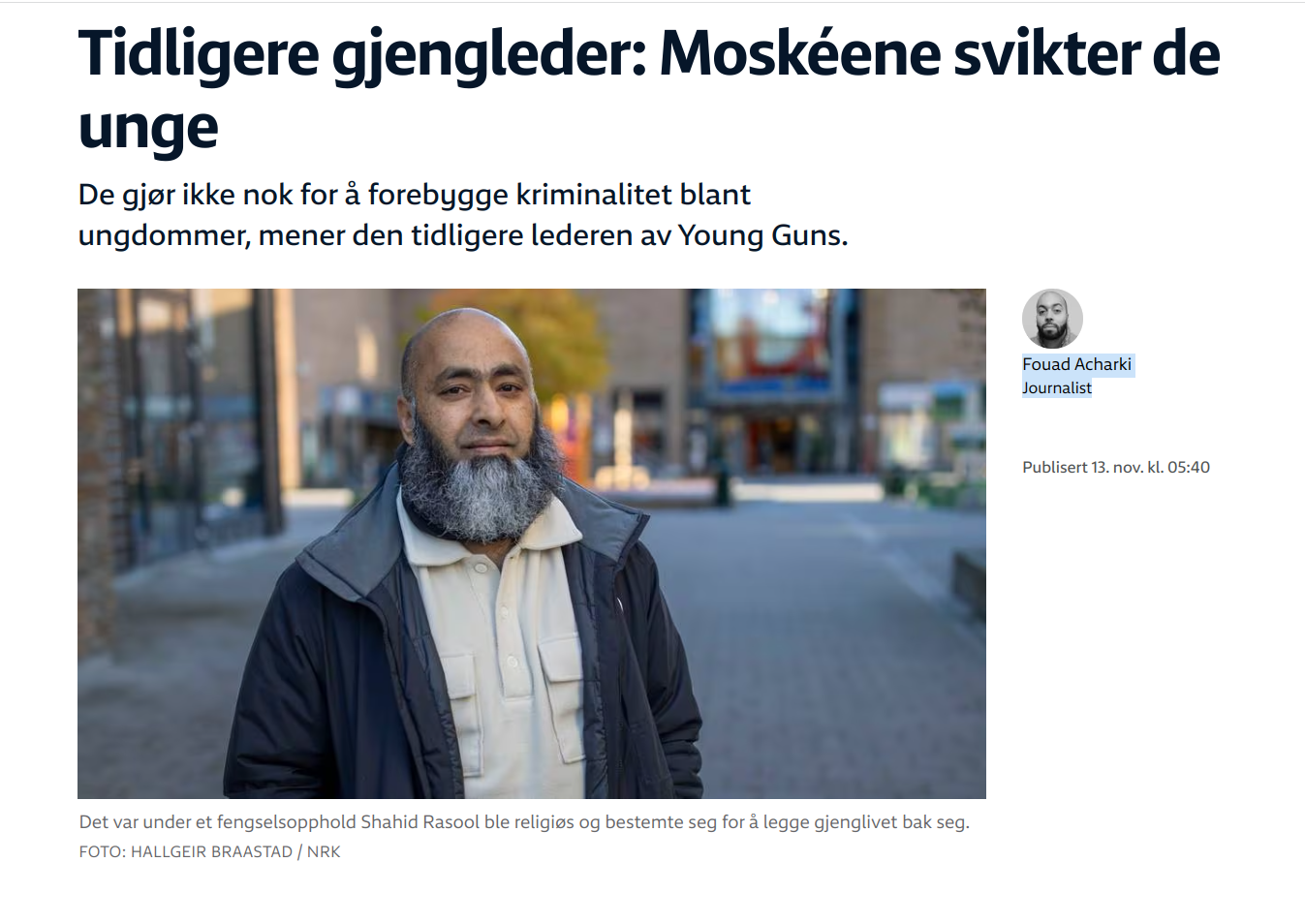 Han er skuffet over at moskéene ikke bruker ham eller andre muslimske ildsjeler til forebyggingsarbeid.