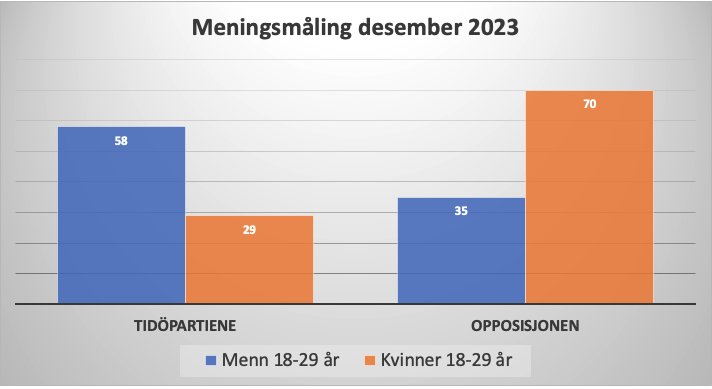 Unge kvinner ville derimot ha valgt den rødgrønne opposisjonen med hele 70 prosent.