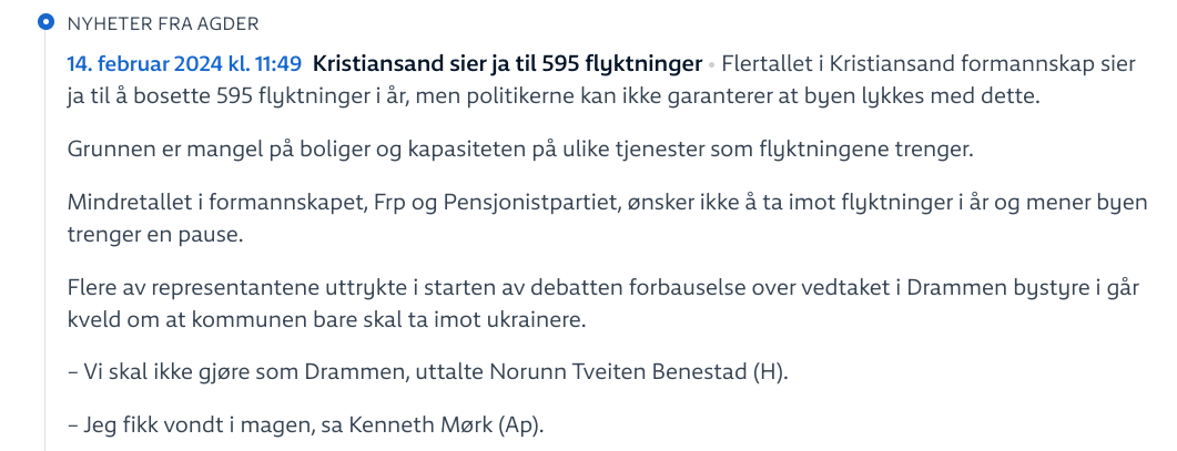 Posisjon og inspirasjon ble byttet ut med fordømmelse og moralposering i Kristiansand, til tross for at kommunen står med innvandrede problemer til langt over halsen. Da NRK Sørlandet oppsummerte fra sørlandsbyen onsdag, var den komprimerte nyheten denne: