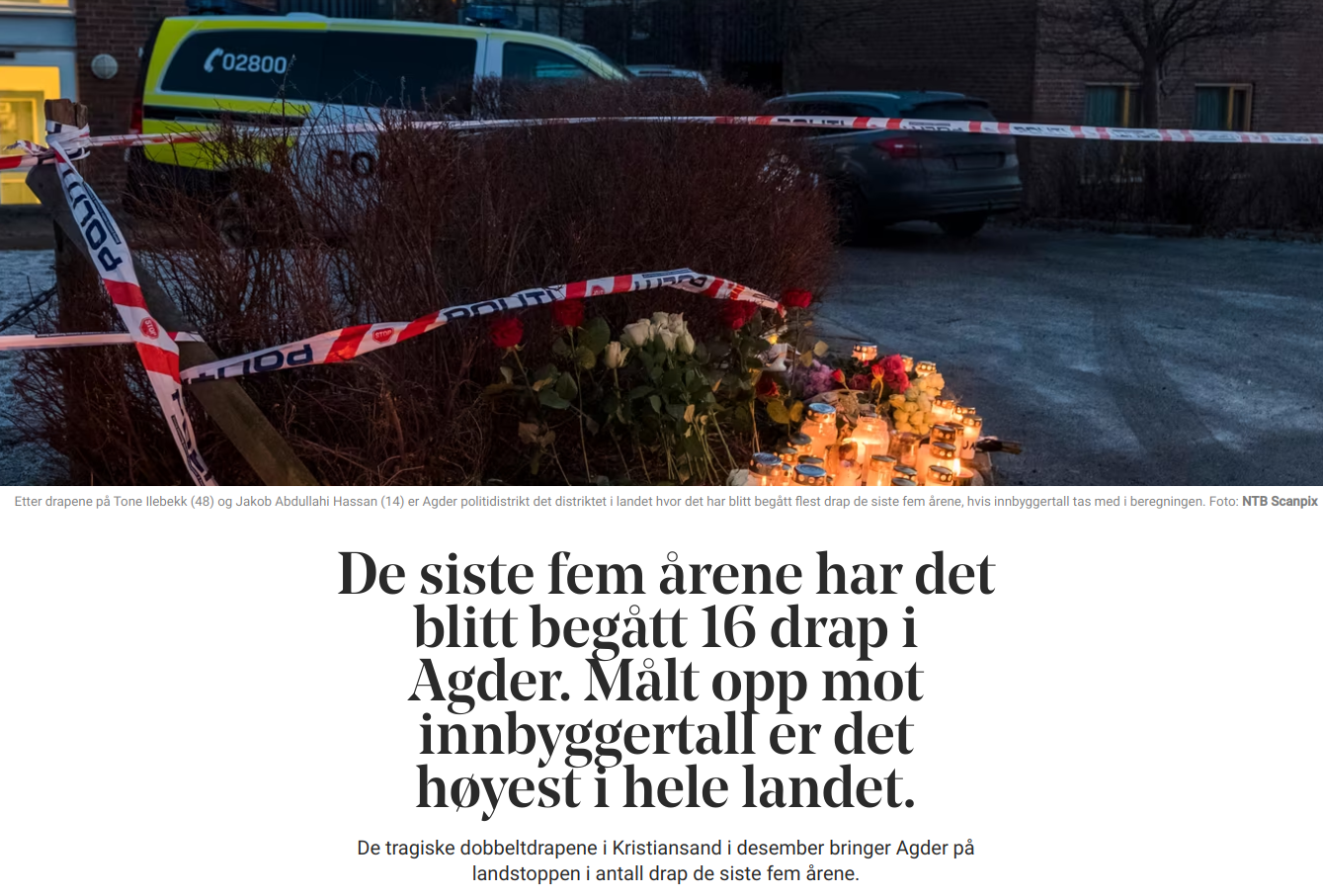 Vi har skrevet en rekke saker fra det tidligere så blide sørland, og gjennomgående handler Agders problemer om innvandret vold i stor skala – et problem de ikke evner å få grep om. Et søk i artikkelarkivet vårt viste 128 treff på «Agder», og et tilfeldig utvalg saker fra fjoråret alene gir en viss ide om at tilstanden siden 2017 snarere går i feil enn i riktig retning.