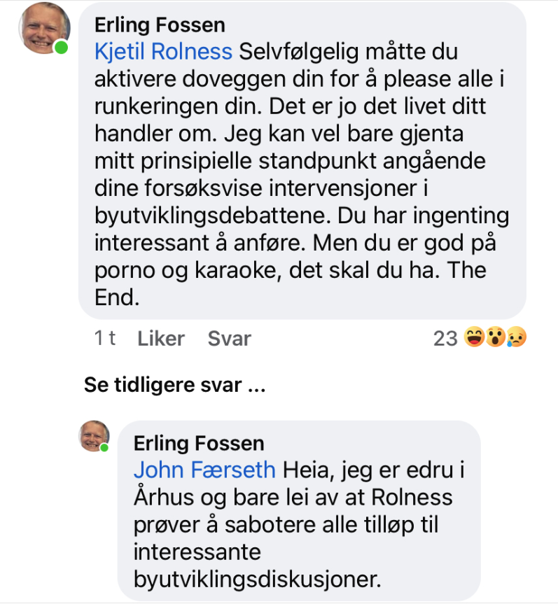 Vi starter gjensynet med en rant som den selvutnevnte «bydoktor» Erling Fossen kom med overfor Kjetil Rolness denne uken (se skjermdump). For i 2015 hadde HRS den store æren å bli skyteskive for den samme Fossen – som da demonstrerte sine manglende kunnskaper, ikke minst fraværet av metodekunnskaper.