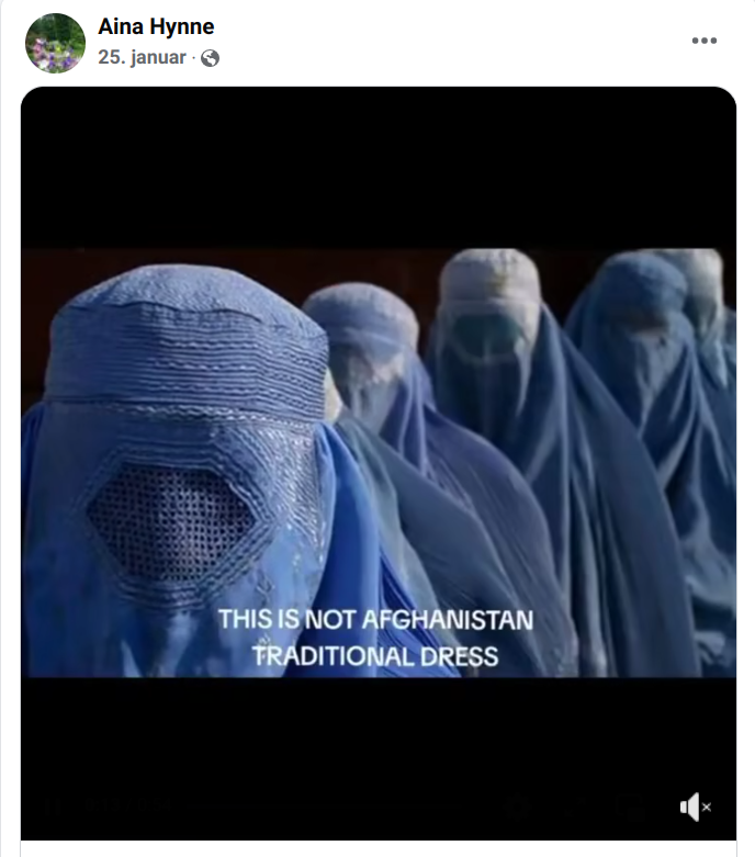 Aina Hynnes Facebook-profil er fremdeles åpen. Videoen av påkledningen til muslimske kvinner ligger der fremdeles. Torsdag 25. januar klokken 09.04 står det.