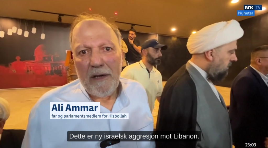 Med sorgtung stemme kommenterte NRKs nyhetsanker Ingvild Bryn scenene som ble servert norske TV-tittere tirsdag kveld. Innledningen til nyheten om at en rekke sentrale terrorister i Hizbollah var tatt ut i et målrettet angrep, ble gjennomført med stort fokus. Ikke på terror eller at Iran-styrte Hizbollah kontinuerlig angriper Israel med raketter, men med fokus på sorgen over de døde terroristene.