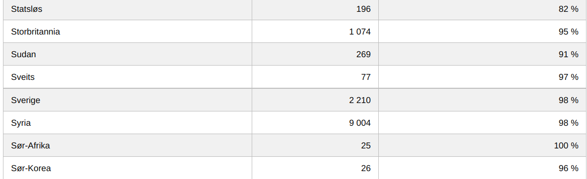 Nå, ett år senere, er selvsagt tallene for 2023 tilgjengelige. Mens antallet innvilgede statsborgerskap for syrere hadde en innvilgelsesprosent på 97 i 2022, er innvilgelsesprosenten i 2023 på 98. Og antallet innvilgede statsborgerskap ble mer enn doblet fra året i forveien det også. På UDIs nettsider kan man lese at blant de drøye 37.000 nyutdelte norske statsborgerskapene, var over svimlende 9.000 av dem til syrere.