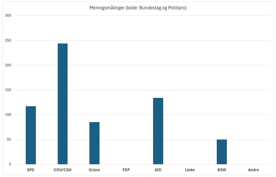 For en uke siden sparket forbundskansler Olaf Scholz den liberale finansministeren, noe som igjen betydde slutten for trepartikoalisjonsregjeringen. Tilbake sitter sosialdemokratene (SPD) og De grønne i en mindretallsregjering. Nå står landet i den usedvanlige situasjonen at det må skrives ut nyvalg. Det er ventet at valget vil bli avholdt 23. februar, der ca. 60 millioner velgere kan ta seg til valgurnene.