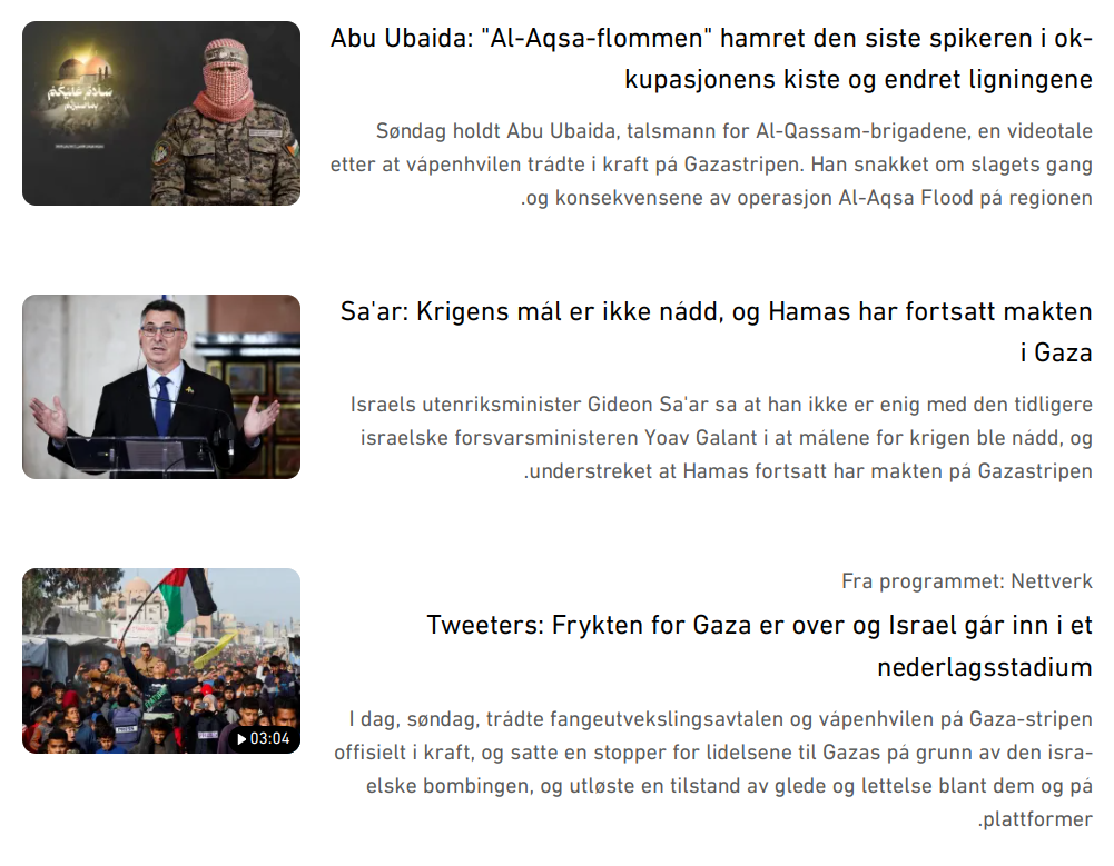 Det er ikke utelukkende Al Jazeera som feirer Hamas’ seier, det samme gjør arabiske influensere i sosiale medier. Spesielt har de maskerte Hamas-krigernes «goody bags» til de israelske løslatte gislene blitt gitt mye oppmerksomhet.