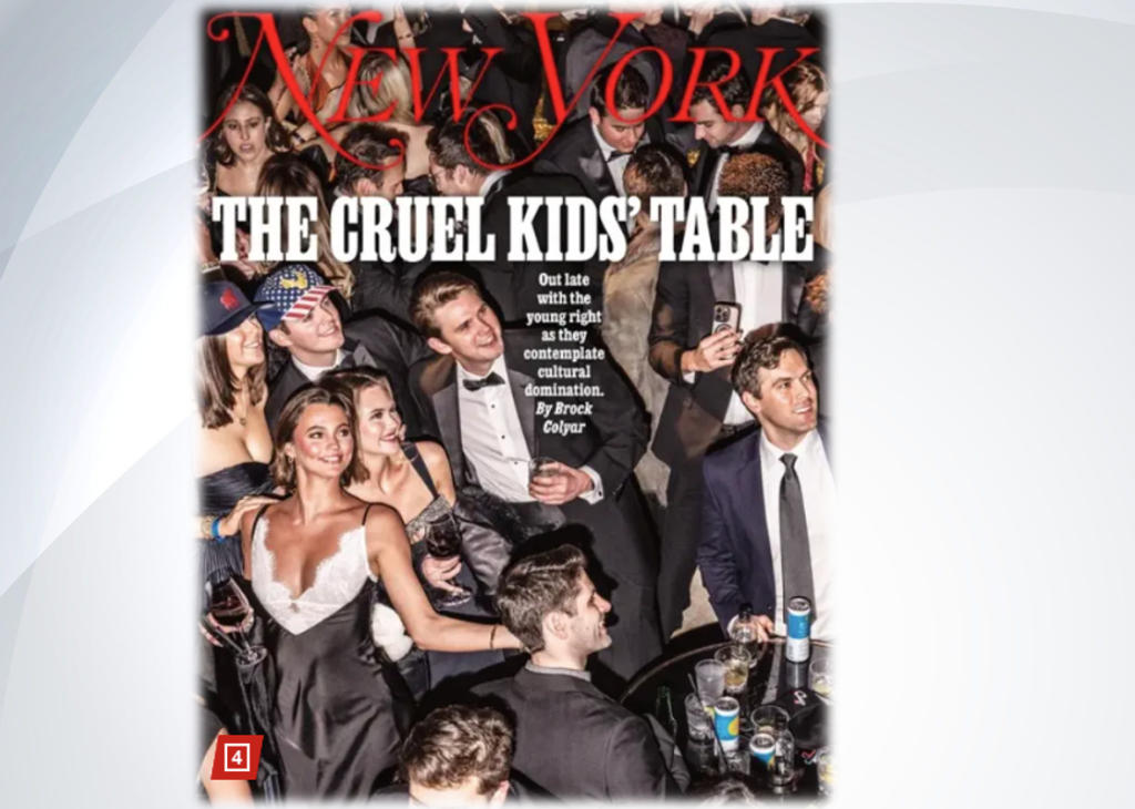 Forsidebildet i New York Magazine (NYmag) viste et rom tilsynelatende fullt av relativt unge, velstående og hvite festlystne på en TikTok-sponset fest kalt «Power 30 Awards», som var en innsettelsesfeiring for den da påtroppende president Trump (faksimile lagt som illustrasjon til denne saken).