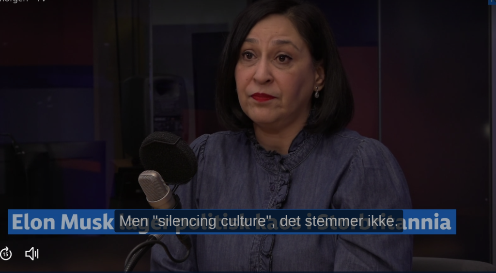 – Det kommer veldig mange reaksjoner på det, det er flere kvinnelige, altså flere organisasjoner som jobber mot, altså folk for unge barns rettigheter, de sier at denne saken her blir brukt politisk og kritiserer Musk for egentlig ikke å bry seg i det hele tatt om disse unge jentene, men slår politisk mynt på det. Og det er veldig interessant når man vet internasjonalt grooming, det er jo ikke bare en sak som foregår i Storbritannia, dette er jo et internasjonalt problem. Epstein-saken er jo veldig tydelig på at dette handler ikke bare om Storbritannia og pakistanske menn. Så det er en ganske nyansert og komplisert tilfelle, men det er veldig interessant, for dette handler også om en slags klassejustis i Storbritannia, for når ryktene begynte å komme, at denne saken holdt på å utvikle seg, så var det jo påtalemyndigheten som ikke tok disse unge jenters…