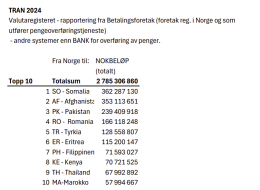 Pengetransaksjoner 2024, tall fra Valutaregisteret, Skatteetaten.