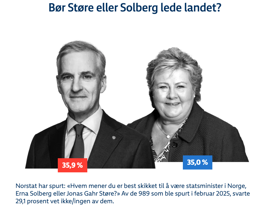 Ikke bare er Ap blitt landets største parti, men også statsminister Støre har fått et gedigent oppsving. Faksimile fra NRK: