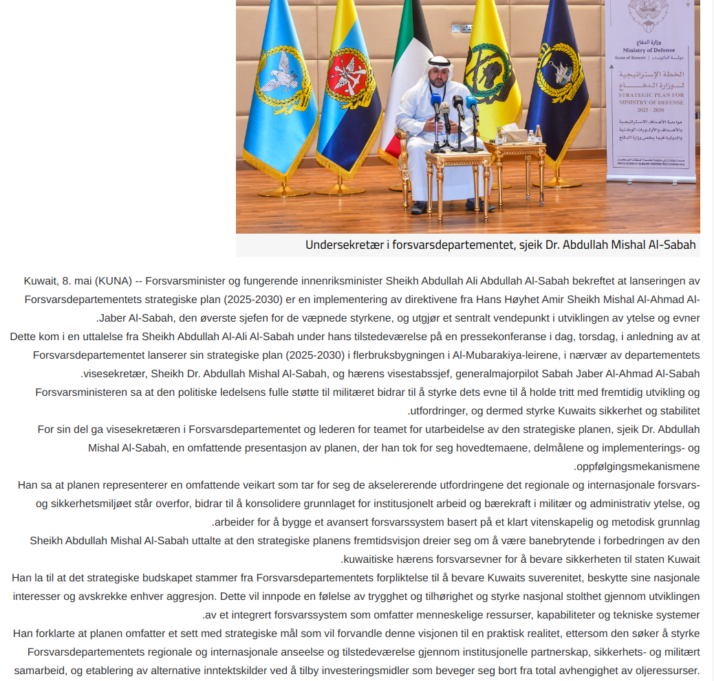 At den nye sikkerhetsstrategien som er publisert på regjeringens nettsider er kokt i hop i det globale fellesskapet der krig og terrorfinansisering omtales som fredsarbeid, blir ekstra tydelig når man tar en kikk på øvrig sikkerhetsstrategi i Midtøsten. Den 8. mai, samme dag som Støre lanserte den norske strategien, var Kuwait klare med sin egen sikkerhetsstrategi – også den kliss lik den norske.