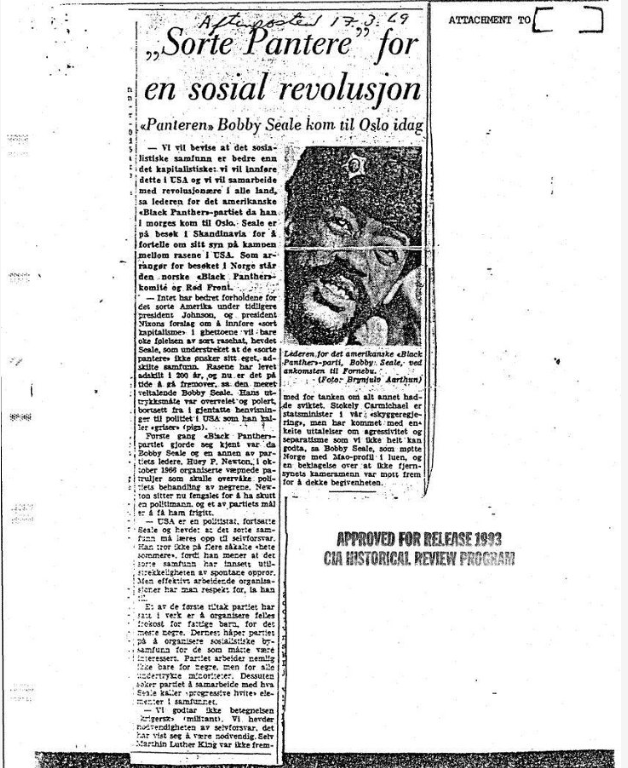 Skal man peke på ett spesifikt særtrekk ved den norske politiske tilnærmingen, så må det være å omfavne det som omhandler «revolusjon mot imperialisme og kapitalisme», og et lite glimt av hvordan dette så ut fra andre siden av Atlanteren ble avdekket da CIA avklassifiserte hemmeligstemplede dokumenter på slutten av 1990-tallet. Da dukket Norge opp. Nettavisen belyste hva amerikanerne hadde funnet arkiv- og hemmeligstemplingsverdig, og det var blant annet en artikkel om Bobby Seales besøk i Norge.