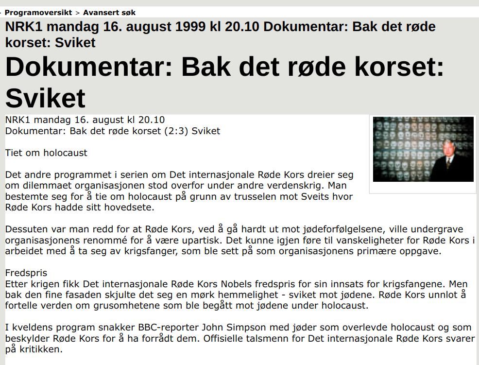 Da arkivet etter andre verdenskrig ble åpnet for innsyn på slutten av 90-tallet, var til og med NRK interessert. Et søk i NRK-arkivene viser at den mørke historien til Røde Kors ble avdekket, og et BBC-program sendt på NRK.