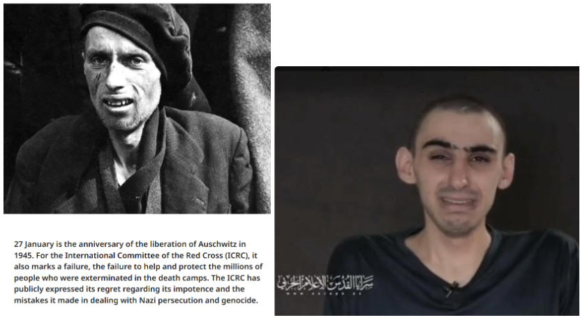 På ICRCs hjemmesider kan man lese om avgjørelsene under krigen og om beklagelsen. Faksimilen fra nettsiden med bildet av den utsultede jødiske fangen bringer tankene til bildene av de utsultede gislene Rom Braslavski og Evyatar David som har dukket opp siste uke. De ble begge kidnappet under terrorangrepet mot Israel 7. oktober 2023 – og Røde Kors har fremdeles ikke besøkt noen av dem.