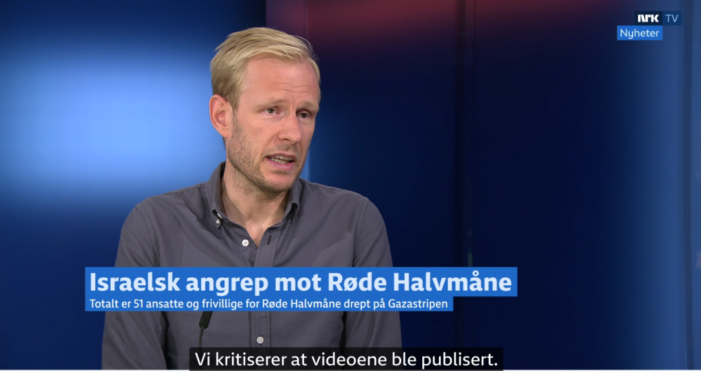 Og joda, humanitære er de jo på sett og vis. Man kan eksempelvis se denne videoen fra 7. oktober 2023, der ansatte i Røde Halvmåne kommer løpende til for å hjelpe en terrorist som har skadet seg.