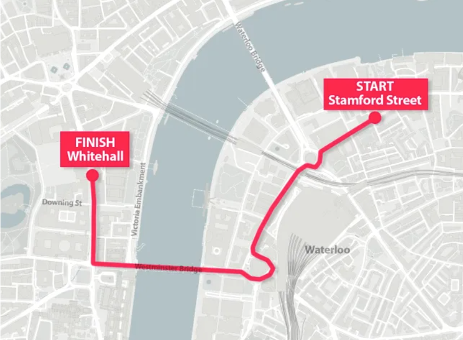 Regnestykket står og faller på hvor mange kvadratmeter ruten var, både i lengde og bredde, om det regnes fra start til slutt, om deltakerne fordelte seg rimelig jevnt og i hvilken grad de forholdt seg tro til denne ruten (ikke også tok andre veier). Men 22.000 kvadratmeter er ikke så veldig stort, det tilsvarer noe over tre fotballbaner.