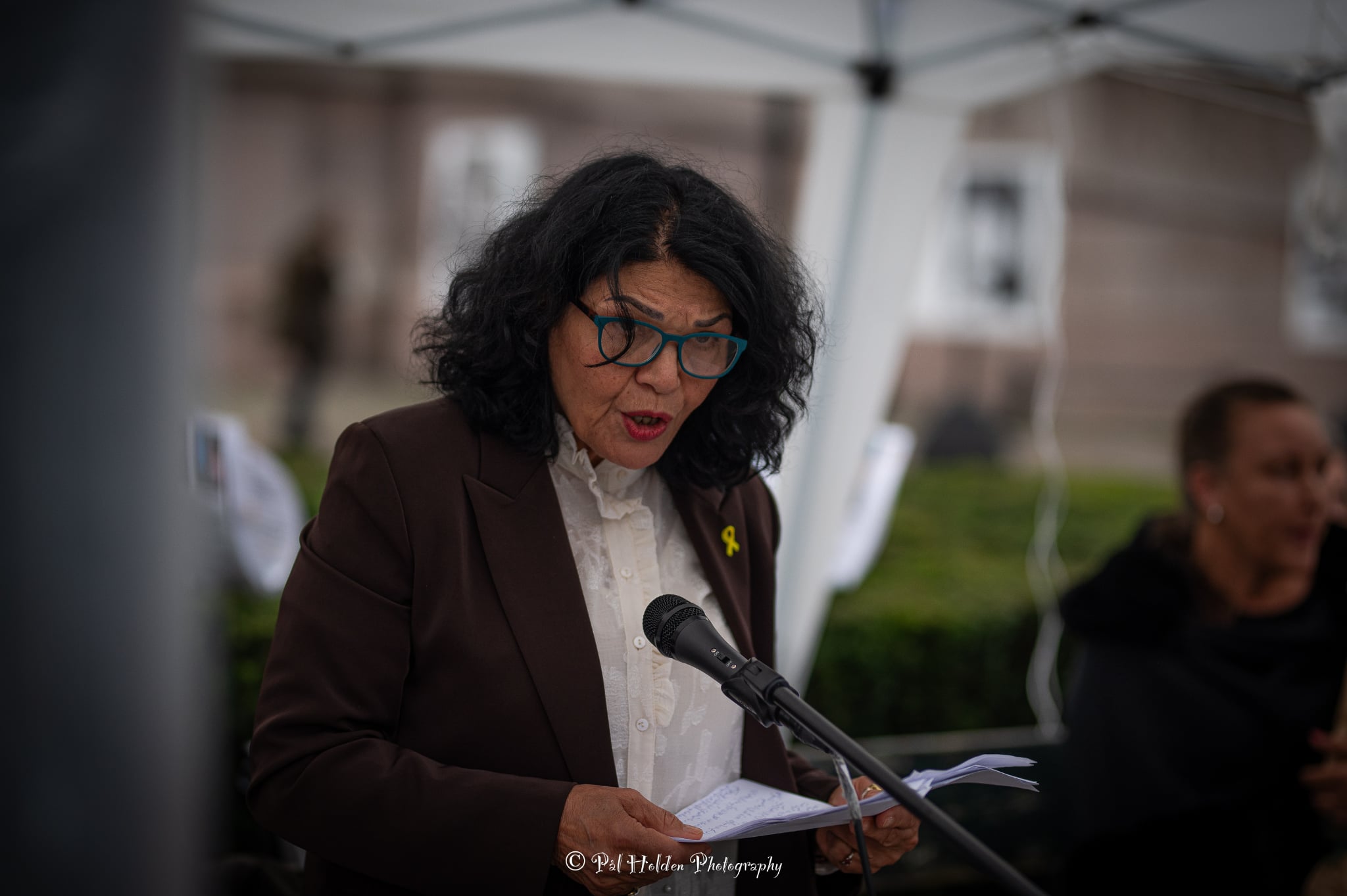 I en markering som denne er det helt naturlig å ha sterke og uredde stemmer som Lily Bandehys. Hun er en forfatter, samfunnsdebattant og kvinneaktivist – en kvinne som har brutt alle tabuer, og som aldri har latt seg kneble. Lily var den rette til å tale om Mahsa Aminis tragiske død, et resultat av brutale og ekstreme sharia-lover. Med skarphet og klarhet viste hun hvordan middelalderske islamske regelverk har tatt tusener av uskyldige liv, og fortsatt daglig kveler friheten i Iran.