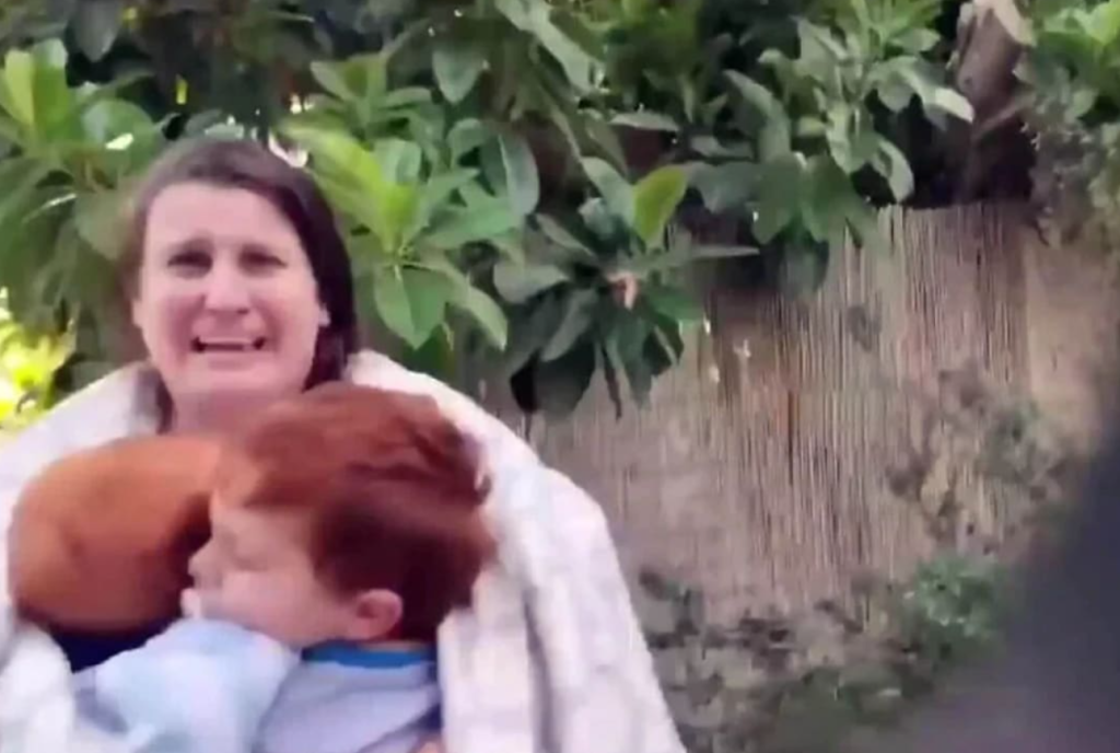 Hovedillustrasjon: Shiri Bibas og hennes to små barn Kfir og Ariel ble kidnappet og senere drept av Hamas. Skjermbilde av terroristenes egne opptak