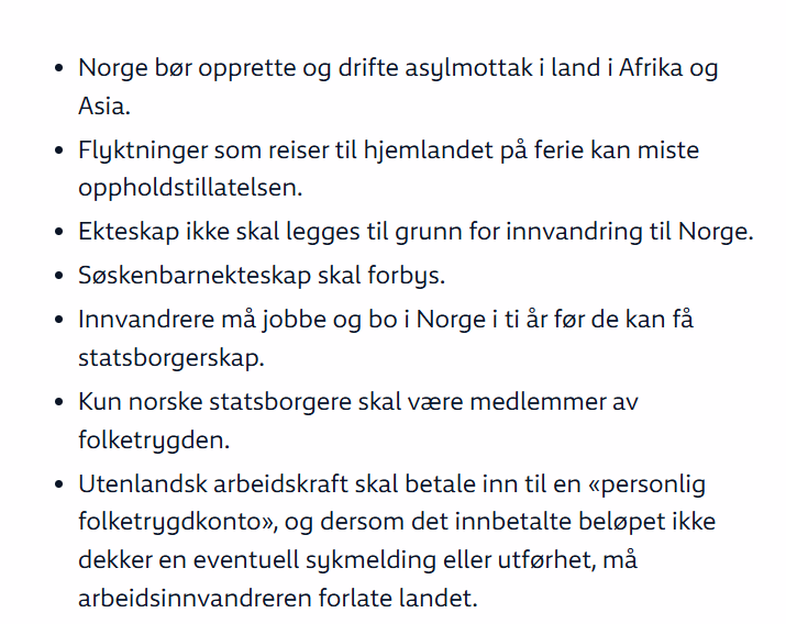 Tolv år senere går altså britiske Labour i FrPs fotspor. Labour har varslet at de vil gjøre det mindre attraktivt for ulovlige migranter å ta seg til Storbritannia og Labour vil gjøre det lettere å returnere dem som ikke får opphold. Rent konkret betyr dette følgende: