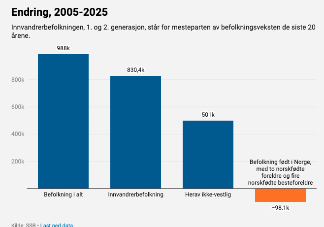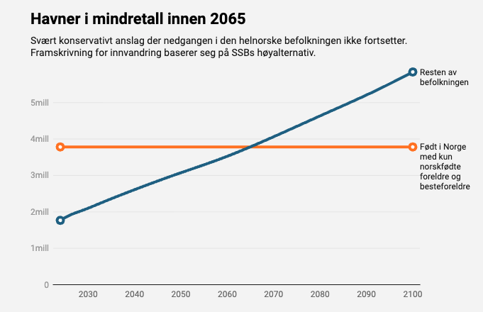 Disse figurene er selvforklarende – og de viser et Norge med et overmot på innvandringsfeltet som altså kan bli etniske nordmenn sin undergang.