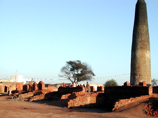 Bildet over: Fra mursteinsfabrikk-området. Her lages det murstein året rundt. "Fabrikken" består av et underjordisk fyringssystem med en høy pipe, hvor mursteinene "bakes". Alt foregår ute, uten noen form for beskyttelse. Varmen fra ovnene er enorme, og tatt i betraktning at temperaturen sommerstid kan være over + 45 grader i skyggen, må heten i disse fabrikkene være umenneskelig.