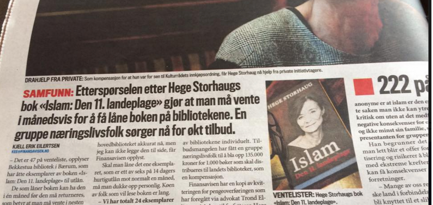 Det er overveldende: Unge støttespillere av Islam. Den 11. landeplage skal nå sende ut 1 000 eksemplar til folkebibliotekene landet over, alle bibliotek på videregående skoler, og de 46 universitetsbibliotekene vi har i Norge. De ønsker å være anonyme av hensyn til personlig sikkerhet og for ikke å ødelegge for forretningsvirksomhetene sine. Den forferdelige hendelsen i Nice var utløsende årsak til initiativet.